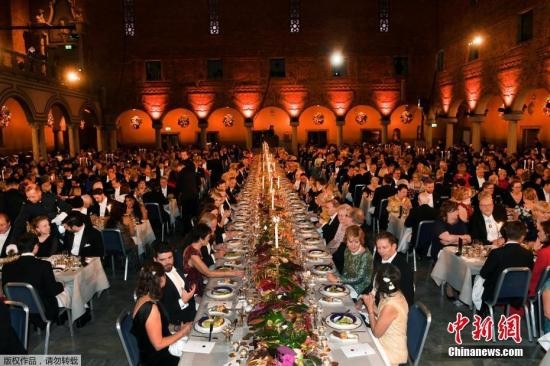 资料图:2018年12月10日,瑞典斯德哥尔摩,诺贝尔奖晚宴举行,诺贝尔奖得主、瑞典王室成员与众多名流出席。