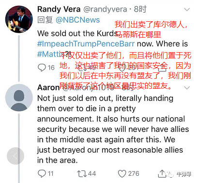 还有,特朗普很夸赞的美国前驻联合国大使妮基·黑莉,也公开发表声明:美国政府现在这么做,等于将库尔德盟友置于死地。