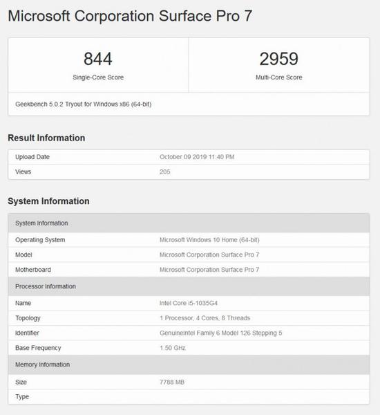 目前国行Surface Pro 7已经接受预订,并计划于11月4日开始发货。不过根据Reddit社区用户Tweey发帖内容,他通过挪威零售商Elkj p下达订单,现在已经提前收到了预订的Surface Pro 7、新款Surface Pen和Type Cover,并且第一时间带来了GeekBench 5.0.2的跑分,单核为844分,多核为2959分。