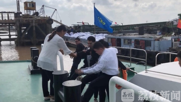 连云港海事局灌河海事处的工作人员陈浩告诉记者,他们当时在灌河水域的航道内巡查,发现停泊在航道边上的一艘货船上有人在向他们打国际上通用的求救手势,便赶忙将海巡艇靠了过去。
