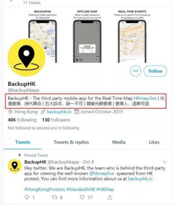 另外,与HKMap.live合作的一个离线版HKMap.live地图的开发团队,也被我们发现是“乱港暴徒”的支持者,甚至可能是参与者。