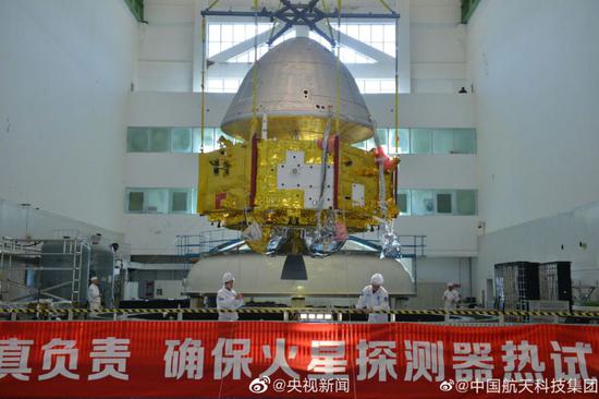 今天,中国航天科技集团有限公司通过官方微博,首次公开中国火星探测器“真容”照片。