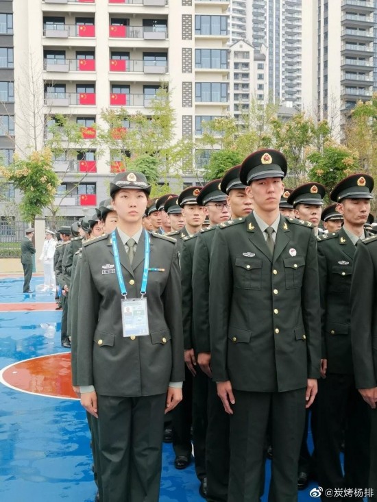 央视记者杨岭发布的现场照片显示,袁心玥站在队伍第一排,姿势笔直,是标准的军人风范。所穿军装显示,她已经是一名中尉。作为八一女排的队长,刘晏含站在第二排,已是一位上尉。