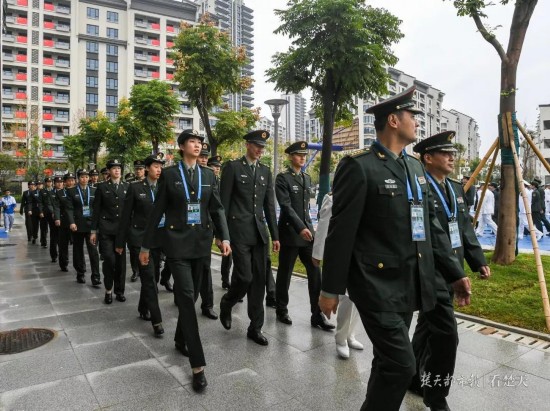 今天上午,运动员村举行“开村”暨中国代表团入村欢迎仪式。执委会主任、军运村村长、中央军委训练管理部副部长杨剑少将宣布“开村”,执委会副主任、军运村执行村长、武汉副市长徐洪兰致辞。
