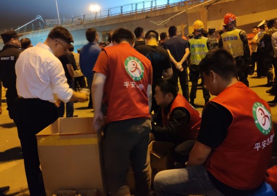 事故发生在晚高峰,很多人都是晚饭前就被临时调了过来。负责后勤的志愿者,几乎把附近商店的都买空了。面包,炒面,桃酥饼,酸奶,矿泉水,就放在一个大纸箱里,供大家饿了自取,然而,很多人都无暇顾及。