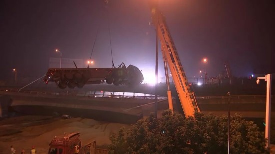 2:30,在被压轿车中找到一具遇难者遗体,这是本次事故中的第一个遇难者。负责搜救的消防员把遗体放上担架,盖上白布,在场的所有人脱帽、默哀。03:35,轿车后半截的孩子遗体被发现。03:50,在另一辆被桥面砸中的轿车里发现了本次事故的最后一名遇难者。