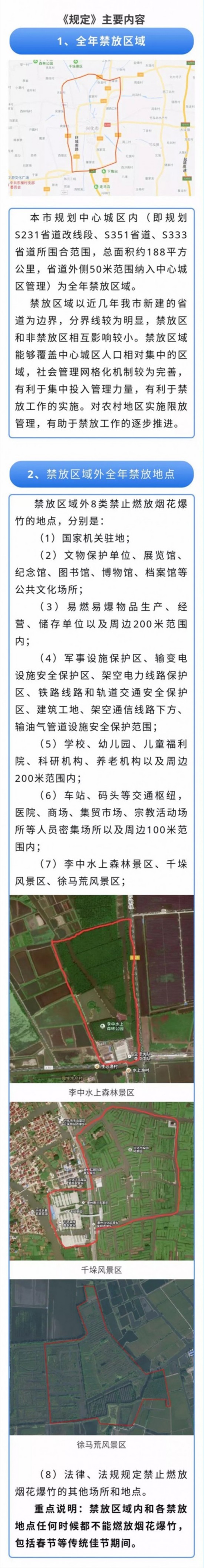 日前,《兴化市烟花爆竹燃放管理规定》正式发布。《规定》中明确,兴化市中心城区内约188平方公里为全年禁放区,此外,还有8类禁止燃放烟花爆竹的地点为全年禁放地点,其中包括李中水三森林景区、千垛景区、徐马荒景区也全年禁放!