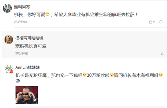 怎么个“宠”法?先来看看机长跟网友们的互动。↓