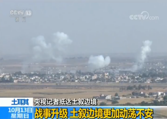 央视记者 陈慧慧:土耳其国防部当地时间12日表示,土军已经控制了叙利亚边境小镇拉斯艾因,我们现在就在拉斯艾因和土耳其交界的土方边境,抵达之后发现拉斯艾因周边的区域仍然还在激战,多处浓烟滚滚炮声不断。
