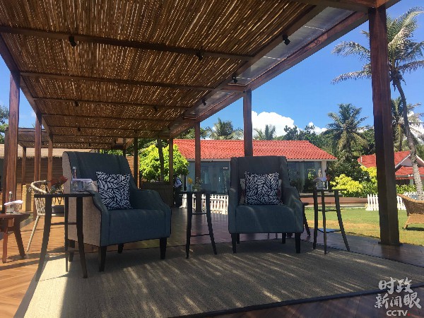△在海滩观景小屋交流之后,两位领导人还走到室外,坐在这里凭海临风,继续畅谈。(央视记者李辉拍摄)