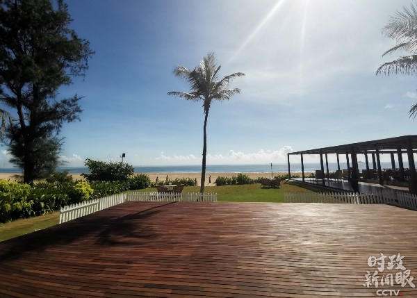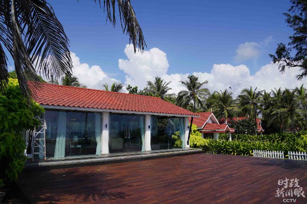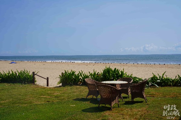 △走出小屋,远处就是海滩。(央视记者张宇拍摄)
