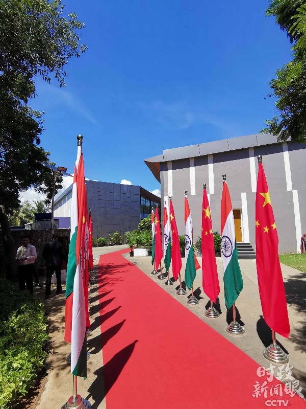 12日上午,习近平主席在金奈同印度总理莫迪继续举行会晤。会晤的地点在泰姬酒店,距离前一天参观的古寺庙群很近。