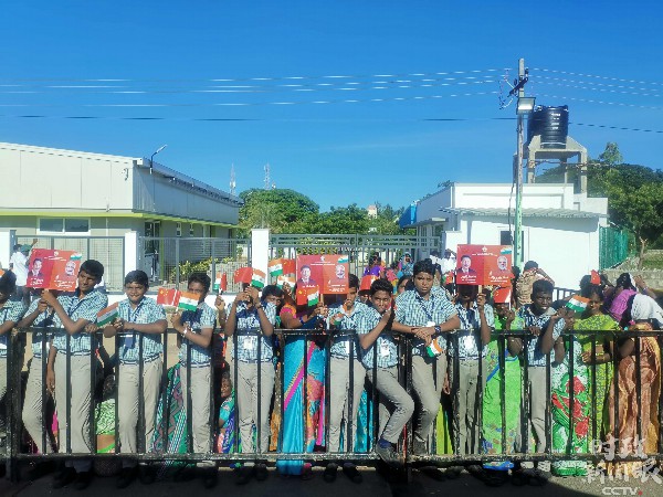 △沿途等候习主席车队经过的印度青少年。(央视记者杨立峰拍摄)