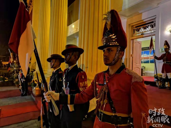 △总统府前列队等待的礼兵。(央视记者关舟拍摄)