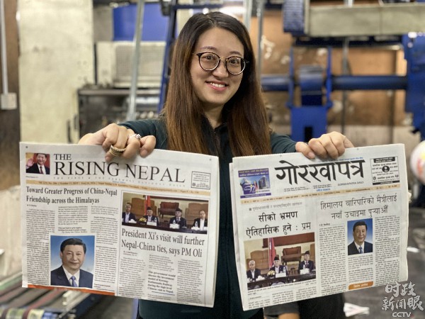 △《廓尔喀日报》刊登了尼泊尔语版的署名文章。这是该报创刊119年以来首次有中国国家领导人的署名文章在报纸头版刊发。(央视记者黄铮铮提供)