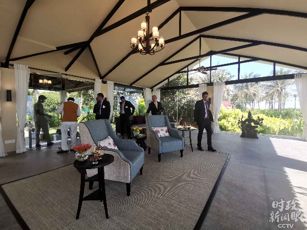 随后,习近平在莫迪陪同下,前往酒店的海滩观景小屋。