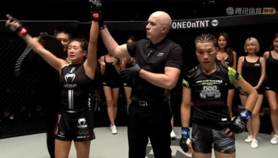 腾讯体育讯 10月13日,“ONE冠军赛:世纪”在日本东京两国国技馆开战。作为ONE冠军赛的第100场赛事,熊竞楠与李胜珠之间亚洲一姐之争续集作为头条主赛压轴登场。在本次比赛中,熊竞楠在第五节被韩国选手李胜珠降服,无缘成中国首位MMA双级别女子世界冠军,而李胜珠保住原子量级金腰带。
