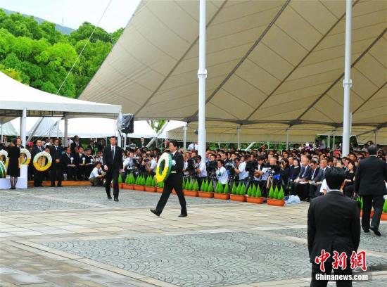 2017年8月9日,“原子弹爆炸72周年遇难者悼念暨和平祈愿仪式”在日本长崎市和平公园举行。首相安倍晋三出席并向纪念碑献花。 中新社记者 吕少威 摄