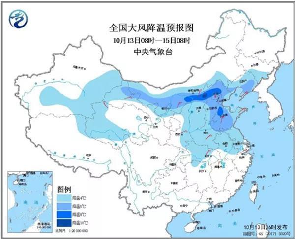 据中央气象台预计,到15日08时,西北地区东北部、东北地区中南部、华北大部等地的部分地区气温将下降4~6℃。其中,内蒙古河套以东地区、山西北部、河北北部、山东西北部等地降温可达8℃以上。