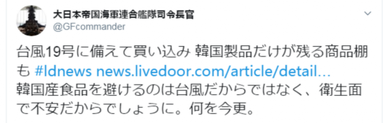 《产经新闻》称,对于此次超强台风登陆日本的消息,韩国也进行了大力度报道。虽然日韩对立愈发严重,许多韩国市民表示,他们祈祷这次台风不会对日本民众造成严重的影响。报道称,虽然一部分韩国网友在网上对日本发起嘲笑,但也有很多网友称“天灾与政治是两回事,这次灾难令人心痛。”