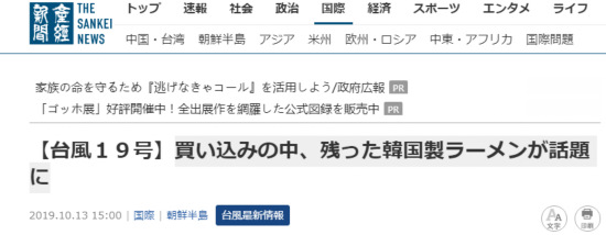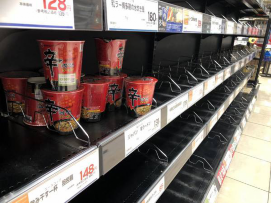 报道称,值得注意的是,“几乎被买空”的超市货架上却剩下了大量的韩国泡面。不仅如此,还有很多韩国品牌的其它货物也无人问津。对于这个现象,《产经新闻》总结称:即使在生命受到威胁的情况下,日本人也坚持不买韩货。