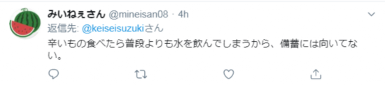 吃这么辣的东西会让我喝更多的水,那我储备的水岂不是会很快变少。
