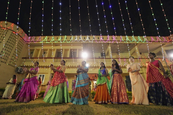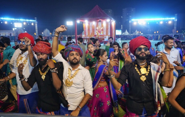 有趣的是,印度29个邦(从行政角度上类似中国各省)均有各自欢庆方式。在古吉拉特邦,当地女性身着华美服饰,开启九天的通宵露天“蹦迪”模式。其特有的加巴舞(Garba)则毫无意外地成为主打舞步。