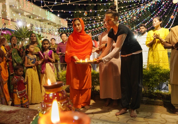 女神节第八天,苦行僧与印度教信众持蜡烛祈福 本文均为 颜国良 图