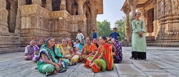 印度妇女仿佛一块行动的广告牌,冲击着视觉神经,激得外来人也跃跃欲试。再者,印度景点例如新德里顾特卜塔、古吉拉特贾玛清真寺大多沙岩质地,身着明艳色彩的纱丽在沙岩古建景点拍照,效果奇佳。