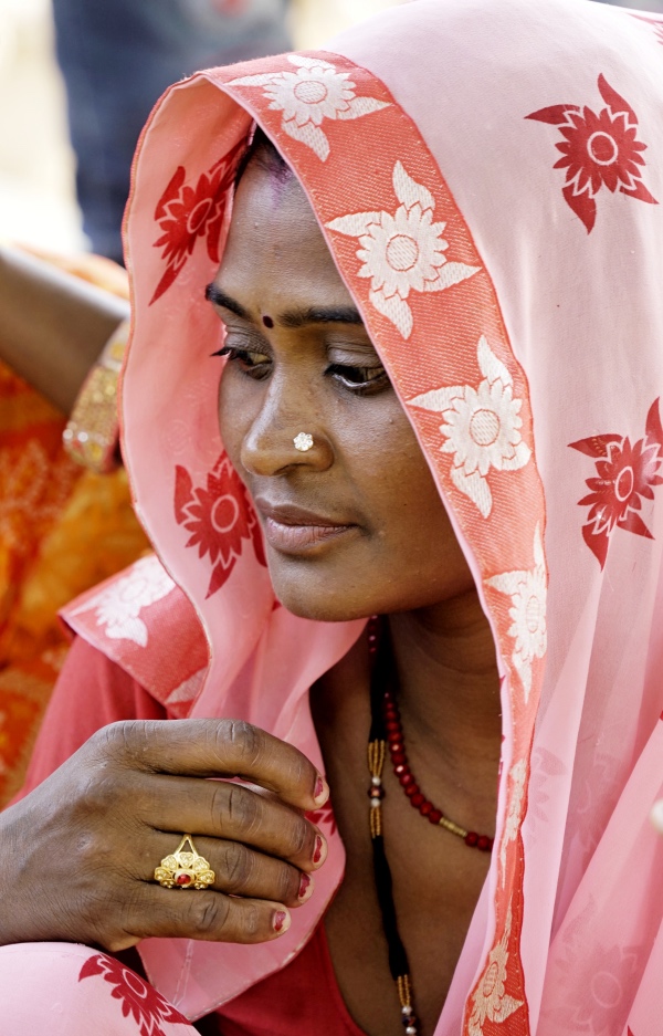 要说纱丽仅仅勾勒出影影绰绰的身姿还不足以解释印度女性它的痴迷。这些褶皱里可以塞钱,装长途跋涉时所需的干粮,干农活或是走路时甚至可以把孩子绑在身上。