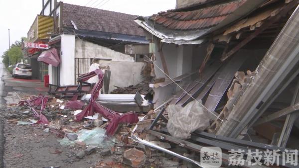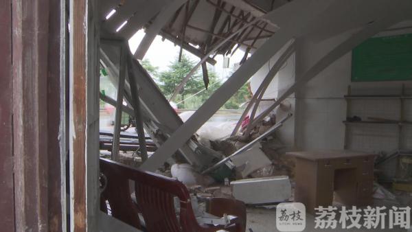 市民成先生在常乐镇常青路上开了一家粮店,昨天上午他忽然听到一声巨响,开始以为哪里爆胎了,一看玻璃都碎了,房子倒了,车的后尾巴在店铺大门口。