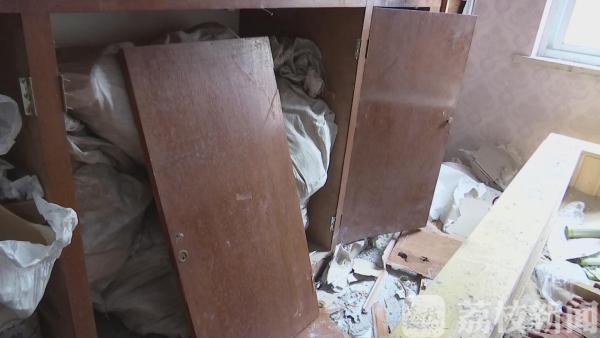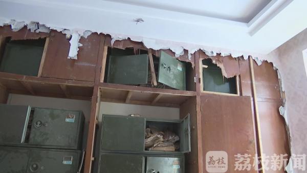 装修地点位于扬州市史可法路上的一栋楼房,记者在二楼看到一个小房间的墙壁已经被凿开,里面露出许多铁皮文件柜,柜子内部塞满账本等文件。看文件柜的标签,这些都是上世纪八九十年代的东西了。工人郁闷的说,他们的任务是装修,拆墙拆出一堆物件,如今扔也不好、不扔也不好,只能原地放着,工程也被迫暂停。
