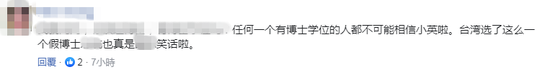 甚至有网友直呼“她是台湾的耻辱。”、“任何一个有博士学位的人都不可能相信小英啦。台湾选了这么一个假博士(作为台湾地区领导人)也真是笑话啦。”