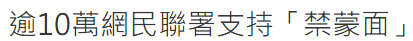 海外网10月15日电 “守护香港大联盟”于10日发起一项主题为“反黑暴、禁蒙面、护家园”的大联署,呼吁广大香港市民积极参与,共同支持《禁止蒙面规例》,向黑色暴力说“不”。截至14日晚,已有逾10万香港市民参与联署。