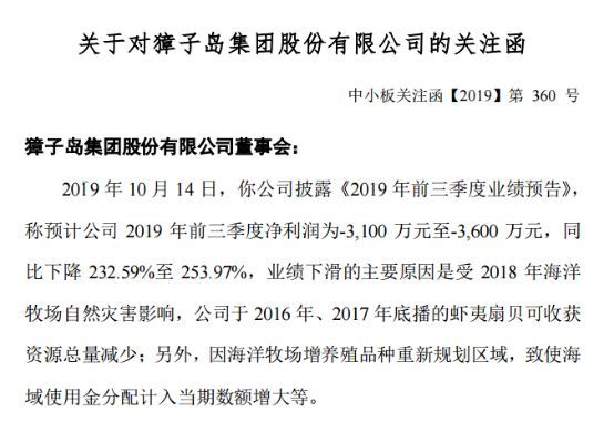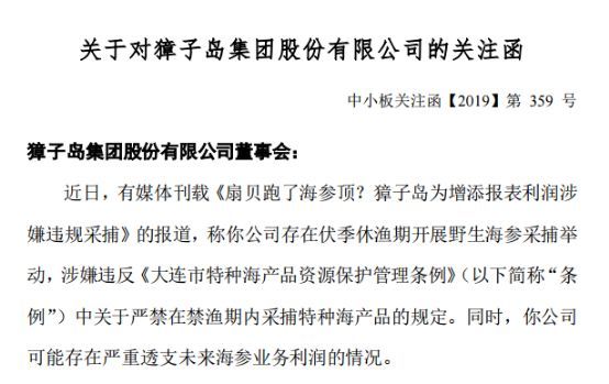 昨晚,深交所发布关注函,深交所要求獐子岛说明在伏季休渔期采捕海参的合理性,是否有利于公司海参业务可持续发展,是否存在报道中所述对海参资源进行破坏性采捕、严重透支公司海参业务未来利润的情形。