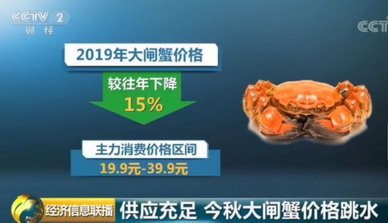 据部分电商平台的销售数据显示,今年大闸蟹的价格较往年下降达15%,19.9元到39.9元成为主力的消费价格。业内人士指出,由于近几年大闸蟹行情火爆、经济效益明显,因此养殖户的数量快速增多,这也使得今年螃蟹的供应量非常充足,价格也更加亲民。