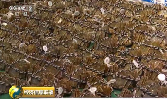 大闸蟹销售商:零售应该是一天5万元左右,销售额加酒店批发应该是12万元, 一天总共售出4000多斤蟹。