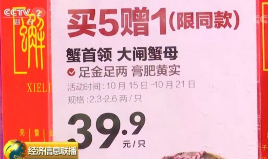 消费者:刚进来看,阳澄湖大闸蟹99元一只,觉得还挺便宜的。