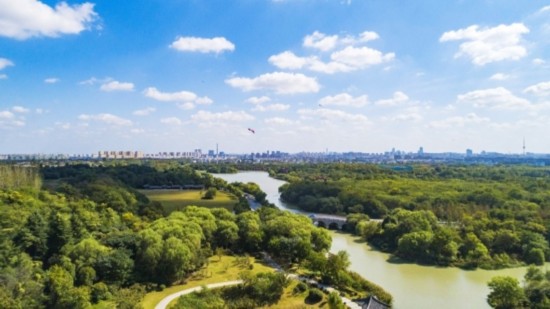 蜀冈之上蓝天白云,丹桂飘香。刘江瑞摄
