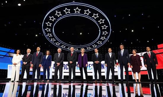 当地时间10月15日晚,12名民主党2020年参选人同台辩论。