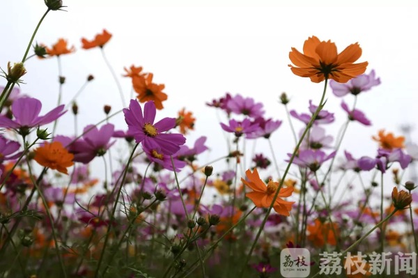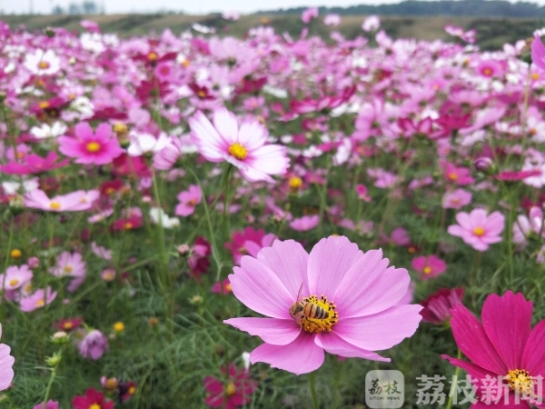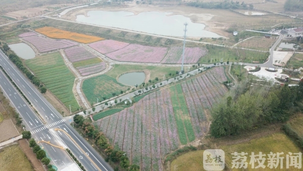 这片群芳争艳的花海,位于东庄组与扬滁公路之间,总面积约60亩,是峨嵋山社区自今年7月起倾力打造的观赏景观。