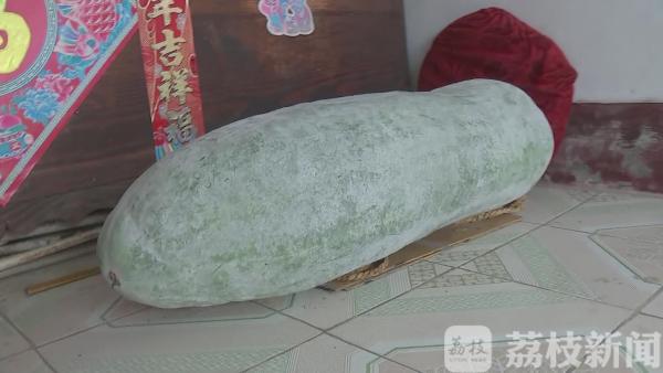 种瓜的老人,家住港闸区永兴街道永兴村2组。上午,记者在她家看到,这个冬瓜王,长一米左右,直径30厘米,一个人想抱起冬瓜,还有些难度,想要称冬瓜的重量,得两人一起使点力。最终,电子秤上显示,瓜重110斤。