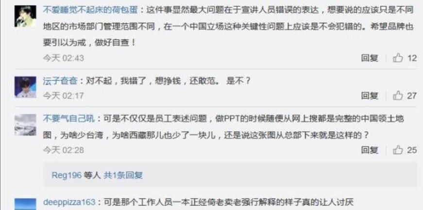 @-只有淡定-:还好及时声明,希望品牌务必重视,中国领土主权问题神圣不可侵犯。