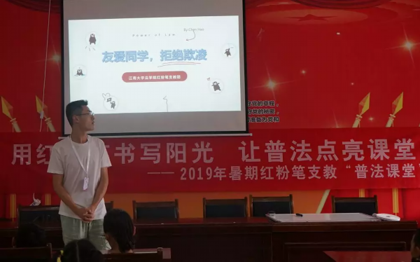 “红粉笔”支教团,2010年由14名江南大学学生发起成立,10年间在重庆、贵州、湖南、安徽等地开展支教活动,关爱留守儿童。