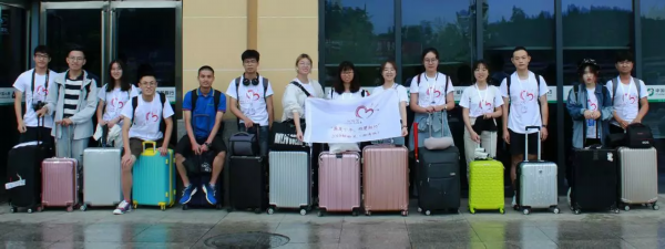 参加今年“红粉笔”支教团活动的团员:(从左到右)谌柯名、管家乐、刘玉彬、陈昊、刘子尧、郝成龙、樊欣儿、龚梓琴、丁宁、梁重、马晓琳、史竞延 、钟晰朦、黄顺