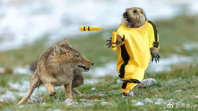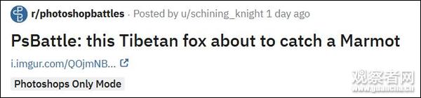 由于照片中藏狐和旱獭之间的互动极具动态画面感,栩栩如生,有网友在海外论坛Reddit上发起了P图活动,吸引了不少P图大触秀了一波“骚操作”。
