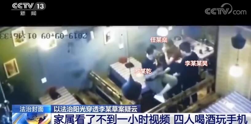 他们看到的是9月8日23点到23点45分左右,不到一个小时的监控。在这段时间里,李某草和另外三人大都在喝酒、玩手机,包括大学室友任某燊以及她的男性朋友李某某昊与罗某乾。