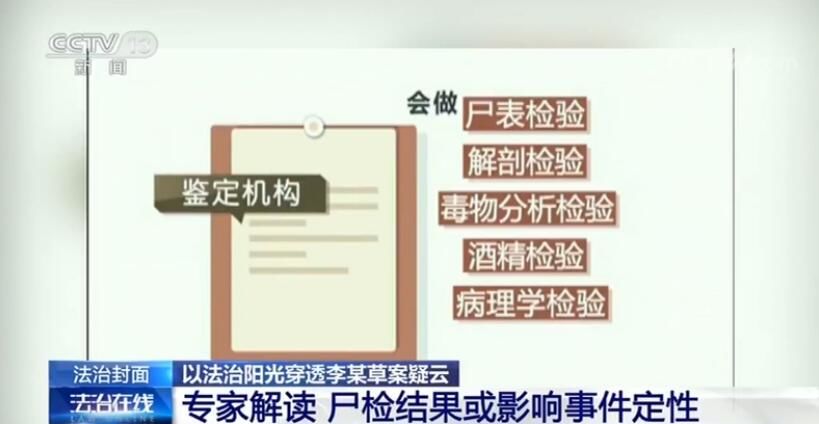 在本案中,李某草生前疑似饮酒。这一项在尸体检验中,法医学专家介绍,一般会提取相应的检材进行检测。