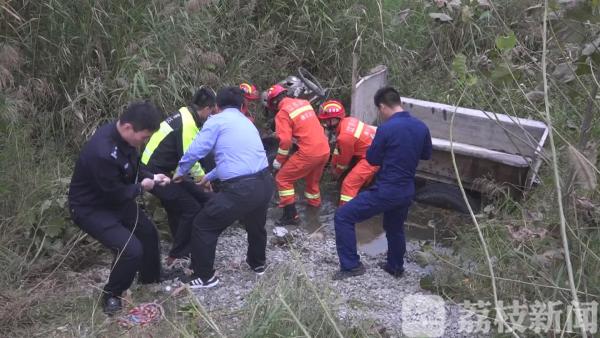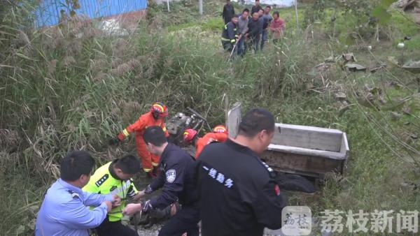 救援人员赶到现场时发现,在路东的一条大沟里,一辆四轮农用拖拉机倒在沟渠,驾驶员被困车下,赶到现场的交警和消防人员立即给农用车系上安全绳,随后,交警消防人员分站两岸,经过十五分钟的努力,终于拉正了机器,将被困人员成功救出。然而经过现场医生诊断,被困伤者因伤势过重,已经没有生命迹象。
