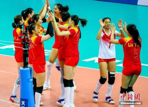 10月16日晚,中国八一女排在武汉迎来第七届世界军人运动会的首个对手美国队,主场作战的中国姑娘最终以3:0轻松击败对手,迎来开门红。这也是本届军运会中国代表团的第一场胜利。图为中国八一女排获胜后击掌庆祝。中新社记者 张畅 摄